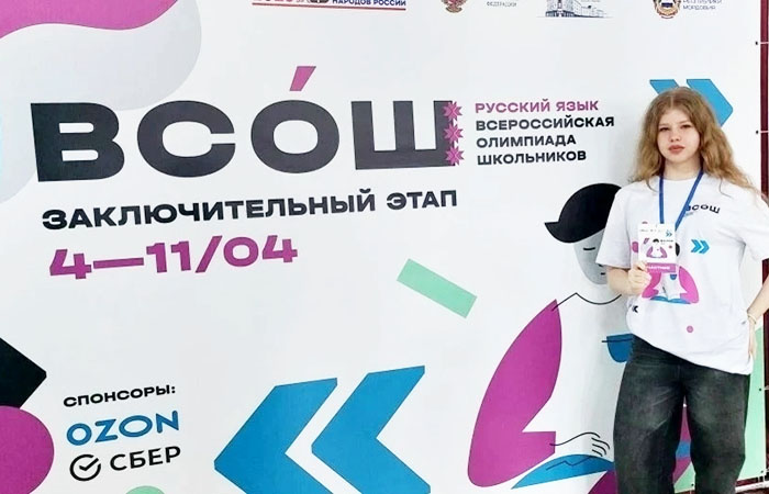 Ученица 9 «Ж» класса представляет нашу школу на заключительном этапе олимпиады по русскому языку